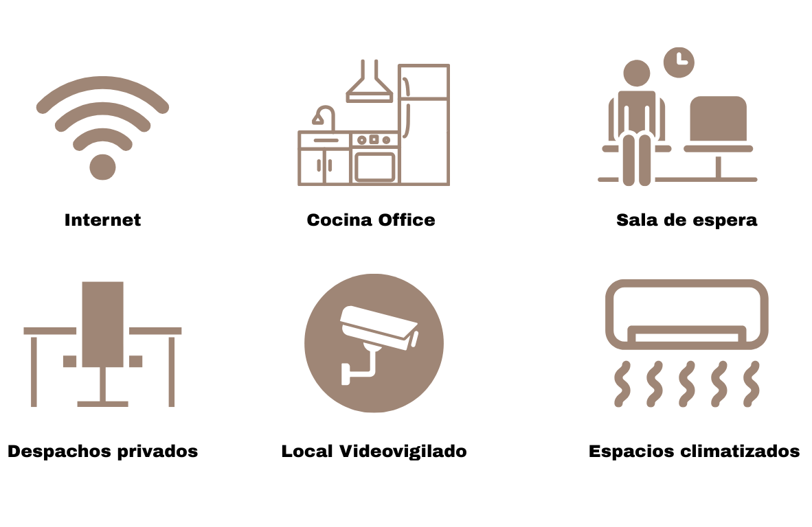 Todos los servicios están incluidos en la cuota de alquiler, tu despacho privado climatizado, con internet de alta velocidad, luz, agua, limpieza , llave privada y alarma.